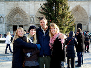 When you are super busy there so much to talk about but no time to say it. My parents and my sister have been in town since December 24th and it has really been amazing. They were two hours late at the airport and I was afraid I had missed them without anyway to contact them. When I finally saw Julie come through the doors the people around laughed because I dropped my composure and ran under the bar in front of me and run-hugged her. Everyday since they have been here we have been out and about trying to cover all of the bases, but we are still having plenty of time to share together inside relaxing (which is all I ever really want). We have been walking to our desired tourist trap and hopping the metro back home. Christmas Day we met up with some of my friends who didn't have family for the holiday and we went to Notre Dame for a service. Mom was snapping pictures inside and out: My adopted brother and I at Notre Dame. Afterwards we headed over to Saint Michel and showed my family around the Latin Quarter. : The sun showed up for a few minutes. GYROS! We came to my host mom's house for drinks then went back to my room for pasta in my room because all the restaurants were closed. A very nice Christmas overall. It has been so much fun, I will talk about our trip to the Catacombs, Pere Lachaise Cemetary and my sister's trip to Dupleix and finally New Year's Eve... soon. My family in my room. |