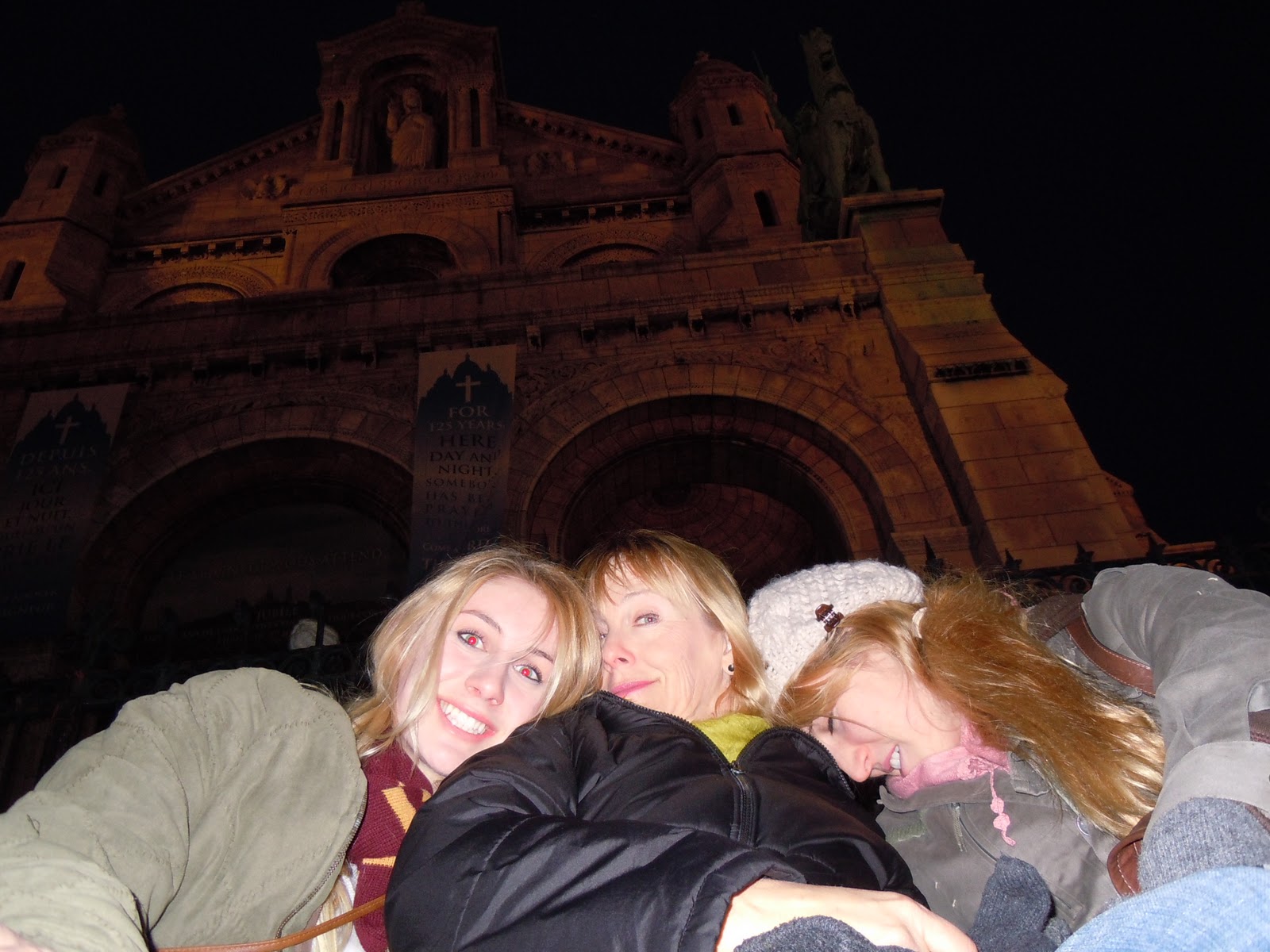 The next night was New Years and I will have to get more photos from my mom, but the four of us went to the Champs de Elysee again for New Years. It was so crowded I felt like a sardine. When we got there they blocked of the street from cars and everyone poured out on the street. We were slightly confused as to what was going on, there was no clock, no lit up ball, nothing. So when the countdown got closer we finally saw that the street lights had all synchronized and apparently that was the countdown, going from RED to GREEN to YELLOW and back. Somehow or other it was New Years and everyone cheered, but it was just chaos. It was a lot of fun, but without the fireworks the past years had promised it was a little disappointing. After, my mom and dad walk back to the house and Julie and I met up with the girls at Corcoran's, an Irish Pub in Saint Michel. Julie got another Monaco and we came home with a pizza about five in the morning. Early for New Years but fun none-the-less.