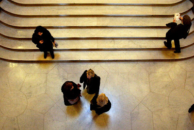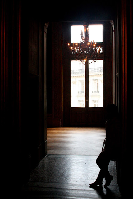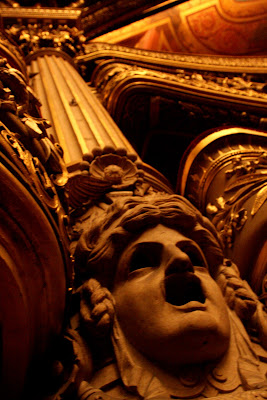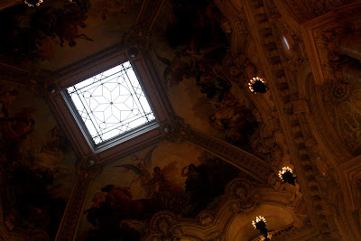 The Opera is the same that the "Phantom of the Opera" was based on, and the movie was actually filmed there. I didn't realize this until I got home and looked up a couple of songs on YouTube to listen to while I was editing the photos of the day. This morning I was also coincidentally reading the National Geographic article my Grandparents sent me about the Parisien underground tunnels and vaults. In the article it actually mentioned that, like in the movie, there is an under ground lake beneath the Opera Garnier that the Pompier (Firemen) use to practice dive missions and that the caretakers are actually raising fish in. It was one of the quarries that filled up with water. So in addition to seeing a gorgeous building, I accidentally ended up learning a lot about it. It was such a beautiful building inside and out and walking through you could just picture the Masquerade, with the ball gowns, masks and music flooding the halls.