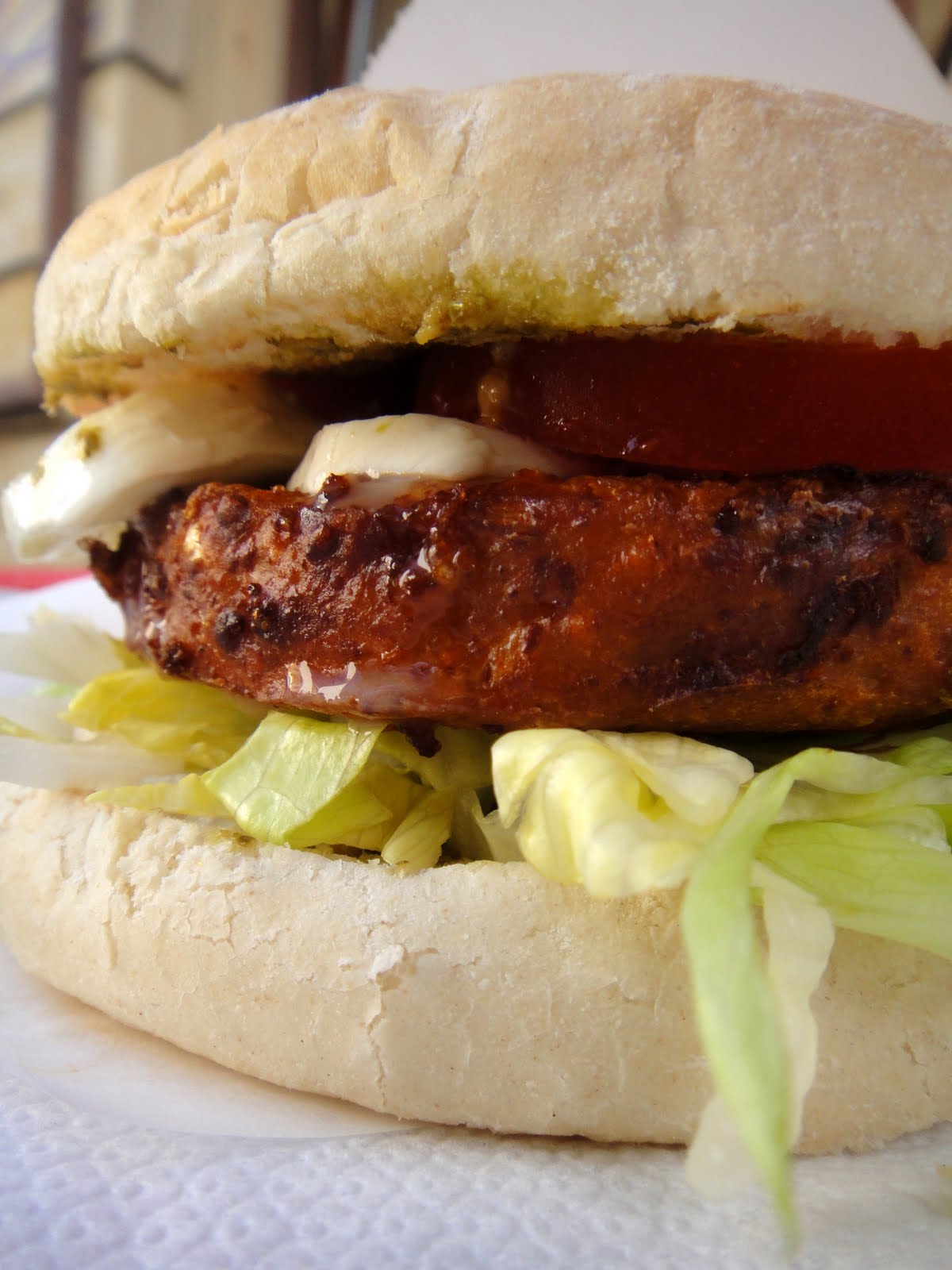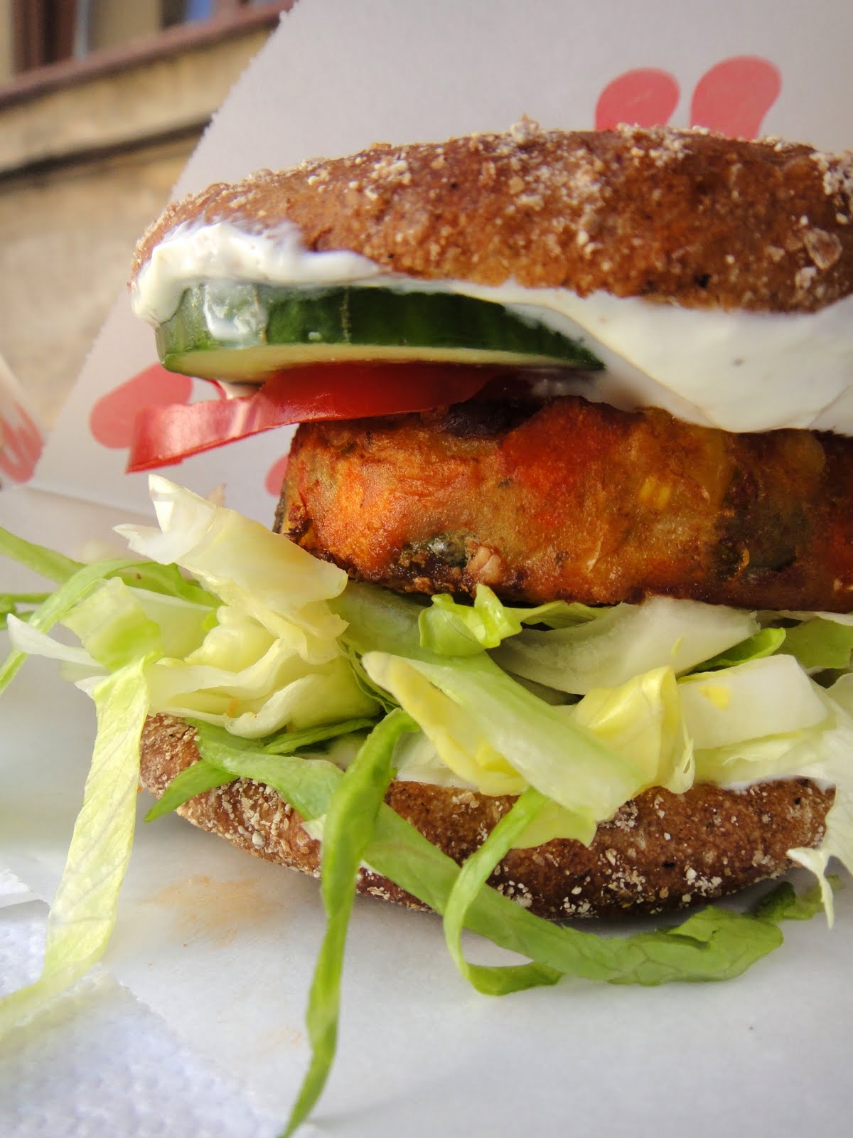 | For dinner Julie and I got really cheap vegan burgers across from the hostel. |