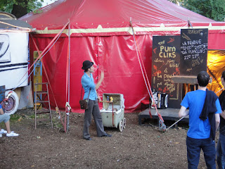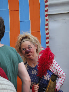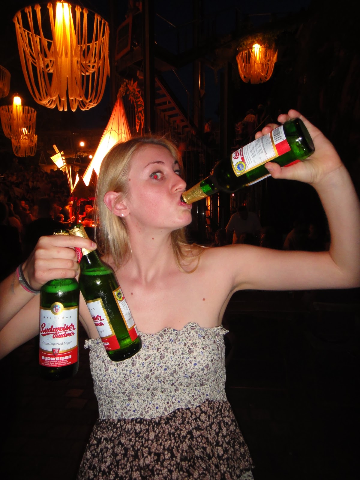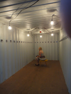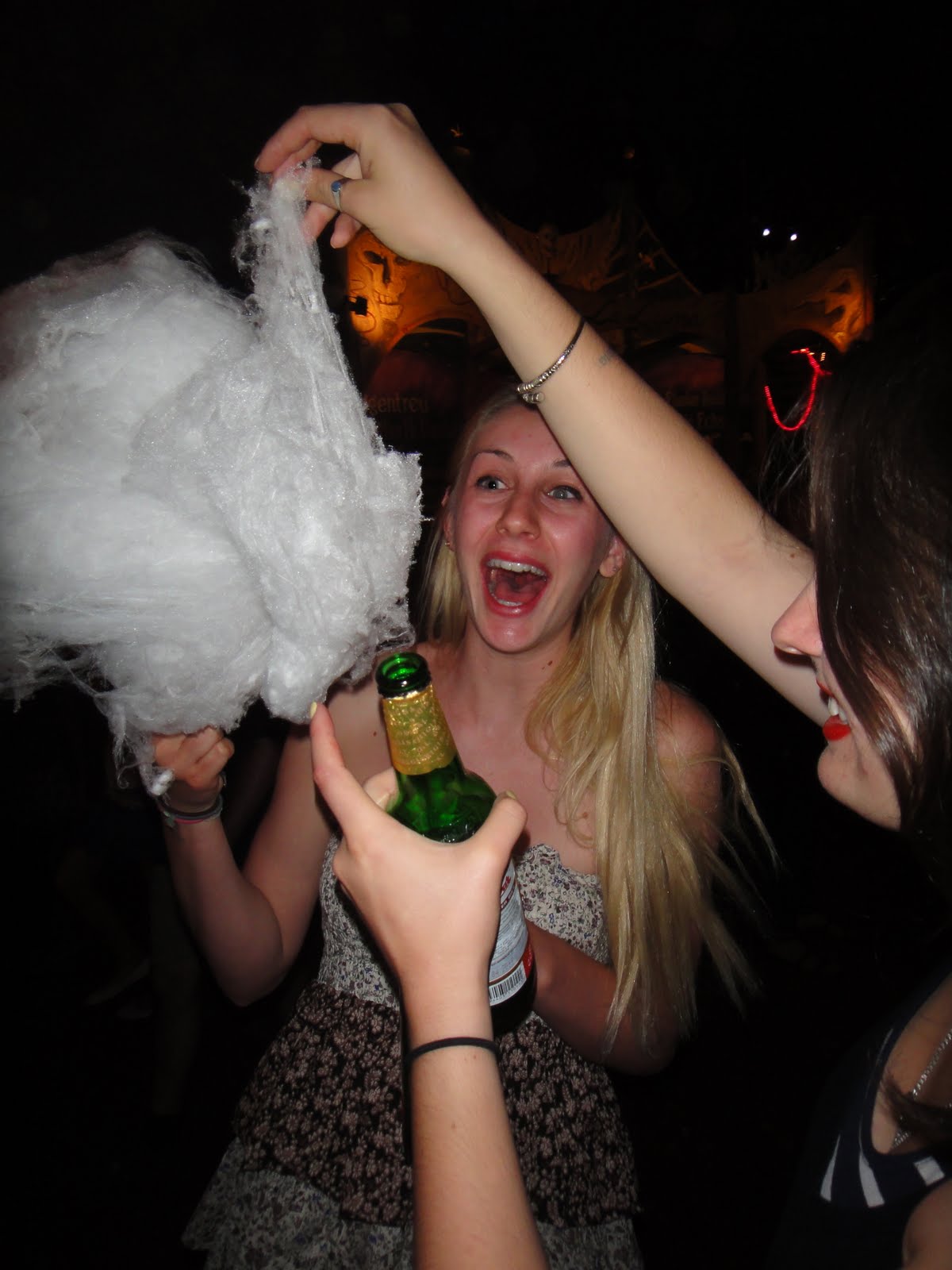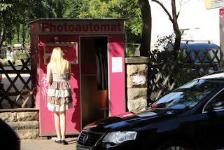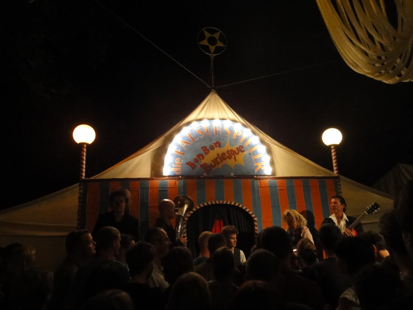 The night we arrived we met up with my good friend Gaby who brought an appropriate amount of British to our little party and we stumbled upon a traveling circus type deal that really is quite difficult to describe without getting literary and really descriptive. We entered through a garden and above our heads were these foams chandeliers that were there for the festival that lit up as the sun got lower. On the side of a fence leaned a great sign with all of the performances of the day and below a ticket booth and a trailer selling beer. After looking around and seeing all of the side acts that tried to get you to come into their booths we decided on an Israeli dramatic performance because it was the only one that wasn't in German and anyone could see. It was a very dramatic performance in a dark room. As we entered a man was already in character sawing at a small piece of wood and standing in the middle of a shallow pool that covered the floor and was filled to his ankles with muddy water that shined when the light moved around. Every action he took was painful for him, and three times different women came out and did a dance that reflected on life's mortatlity. One woman came out of a large blow up head and did a violent dance, the next came out of the water and had a baby doll on her hand (which gave everyone chills) and the third came out over our heads and danced on top of a white sheet the shook rapidly.