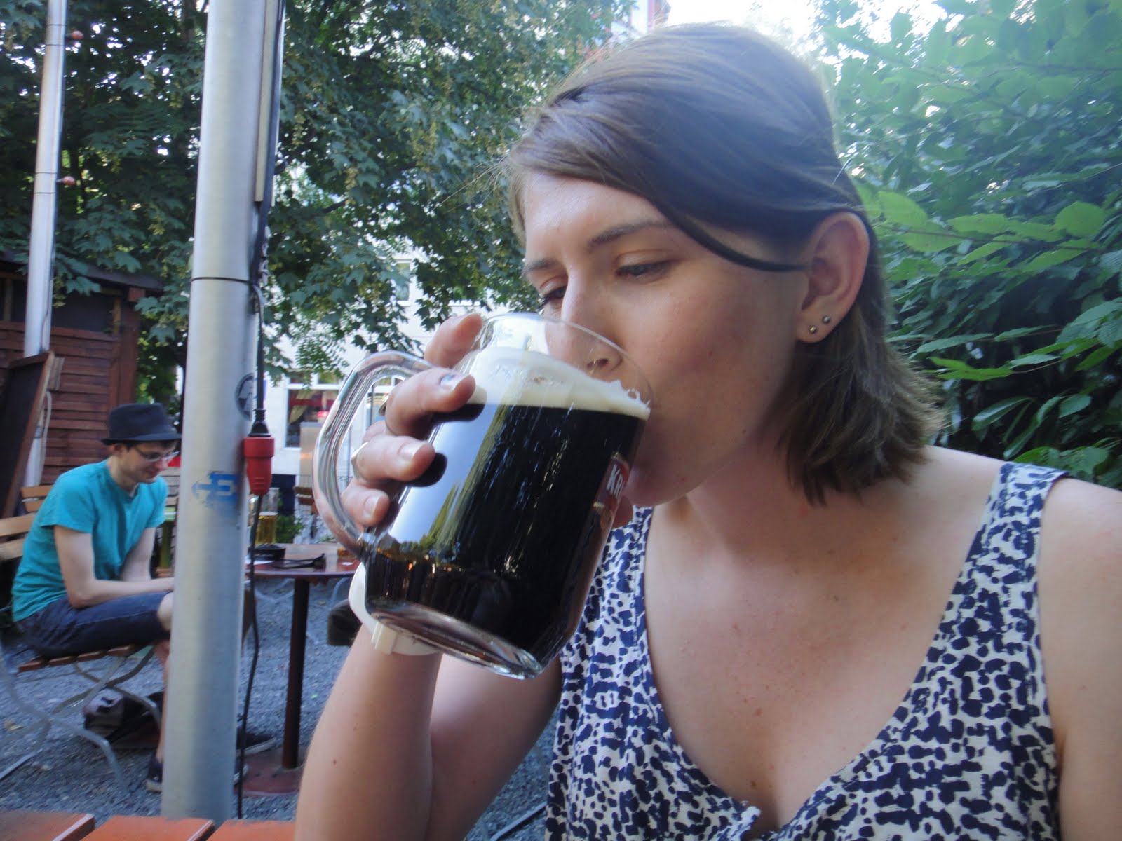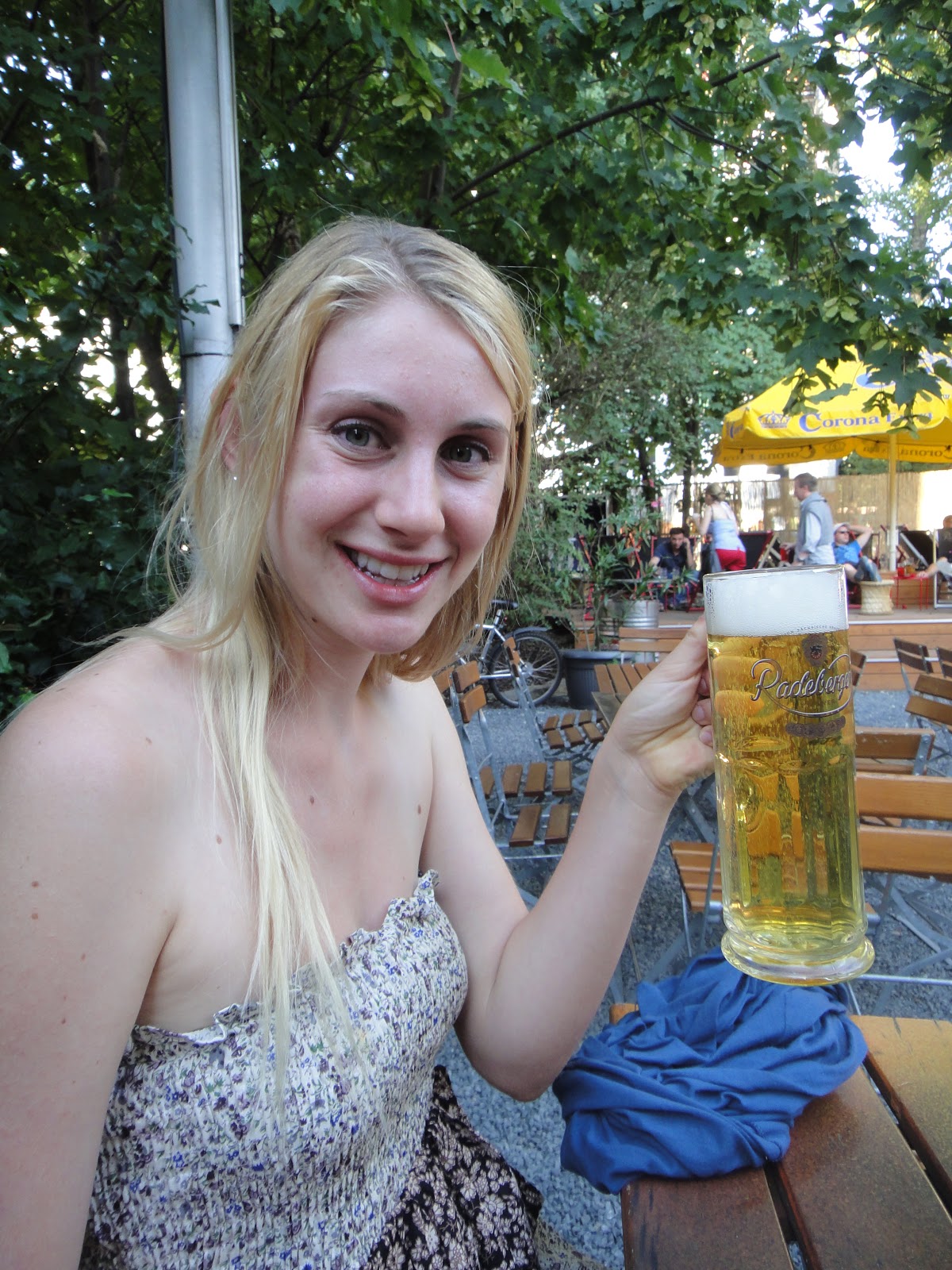 | Julie and her favorite Radler. Half beer and half lemonade. |